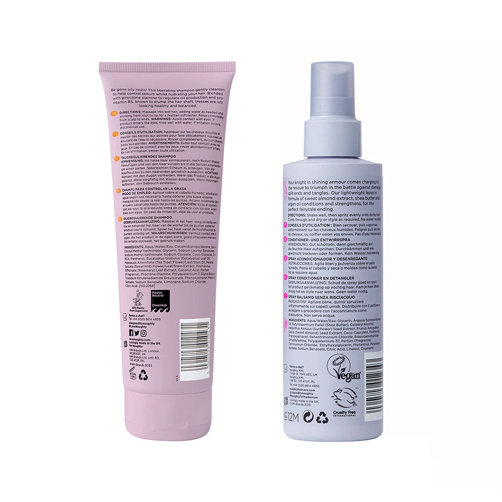 Concerned by oily roots, tangles and dehydrated ends? The Oily Roots Haircare Duo is for you! Gentle balancing shampoo to regulate oil production and extend hir wash days* and lightweight leave in conditioning spray. Sulphate-free, silicone-free, paraben-free.